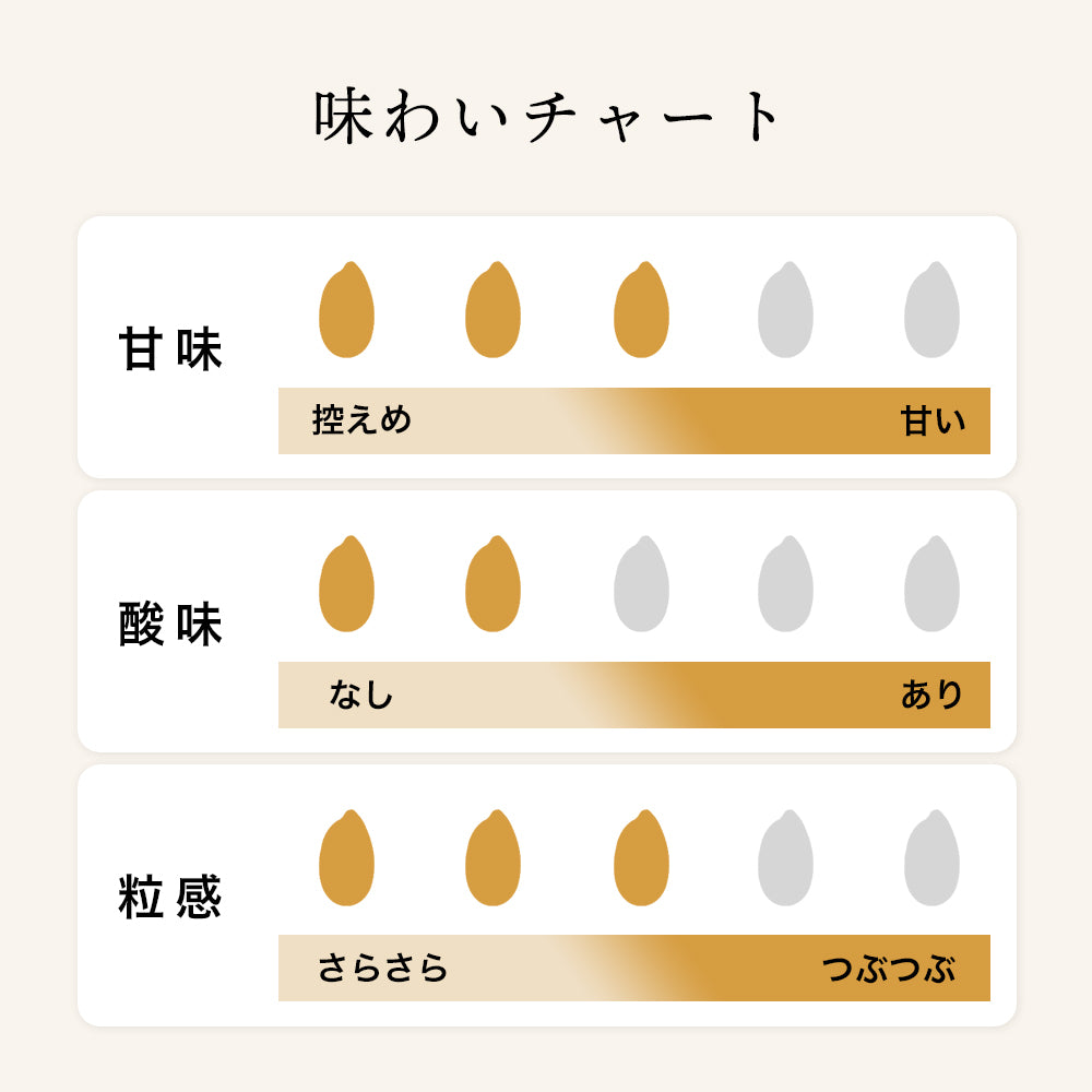 麹の優しい甘さと香り。お米本来のお味を楽しみたい方に。 -