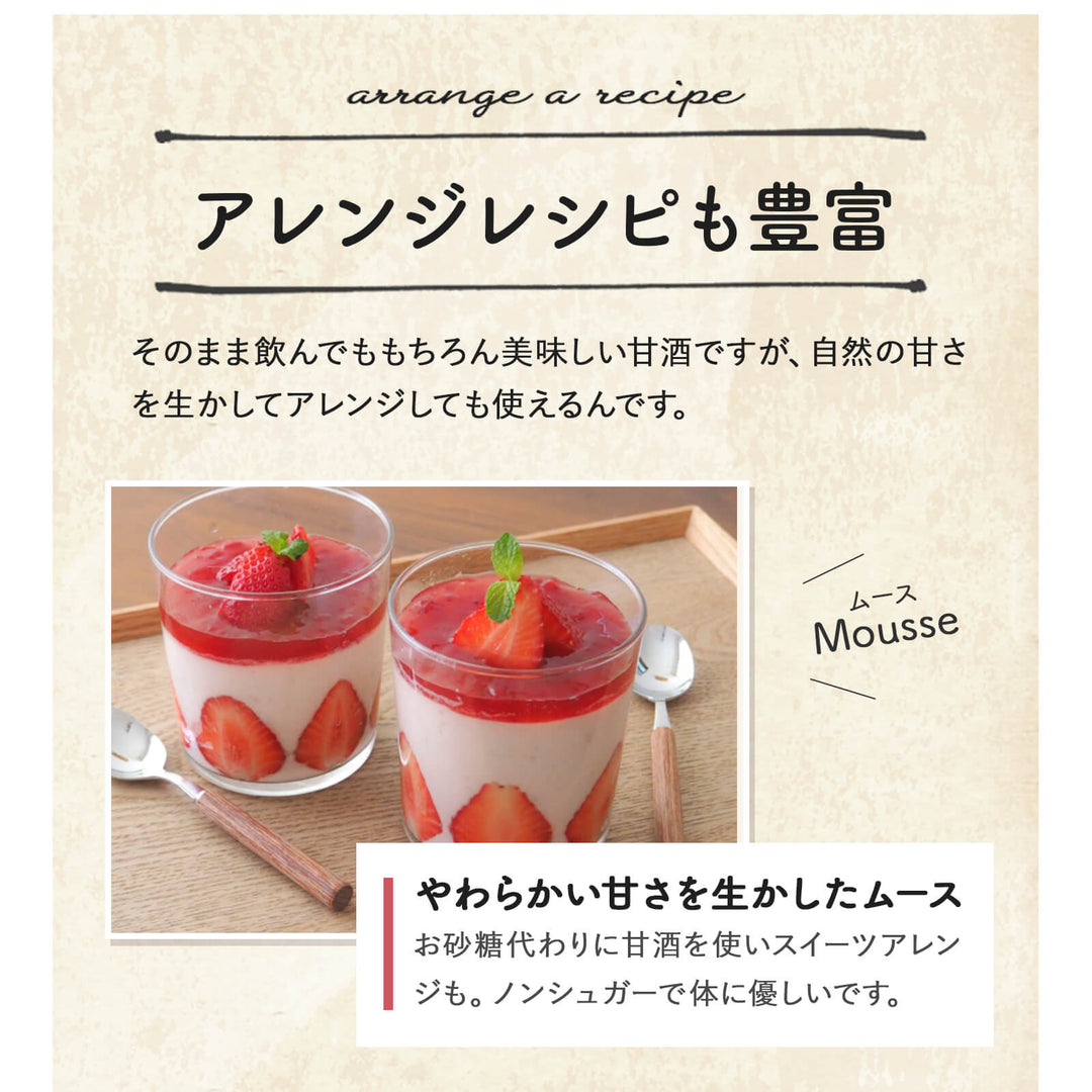 甘酸っぱくてフルーティーな乳酸発酵甘酒です。